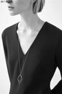 Simple geometric round necklace – long chain sweater chain for women – all-season style