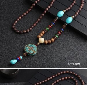 Handmade jewelry pendant, vintage ethnic style sweater chain, wooden bead necklace, long-style women's accessory, decorative pendantHandmade jewelry pendant, vintage ethnic style sweater chain, wooden bead necklace, long-style women’s accessory, decorative pendant