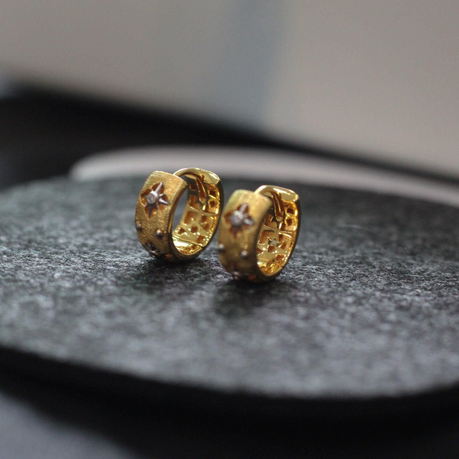 Korean texture hollow octagonal star gold ear cuff earrings – elegant and simple style earrings for 2025 new collection