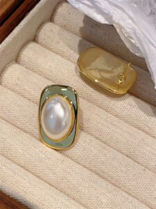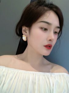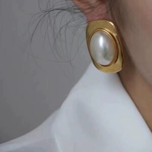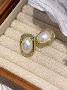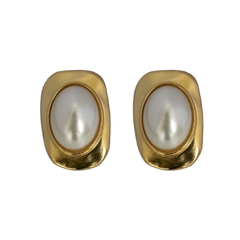 French-style metal-edge square pearl earrings – elegant, Instagram-worthy, bold and fashionable stud earrings, with a simple and refined style.