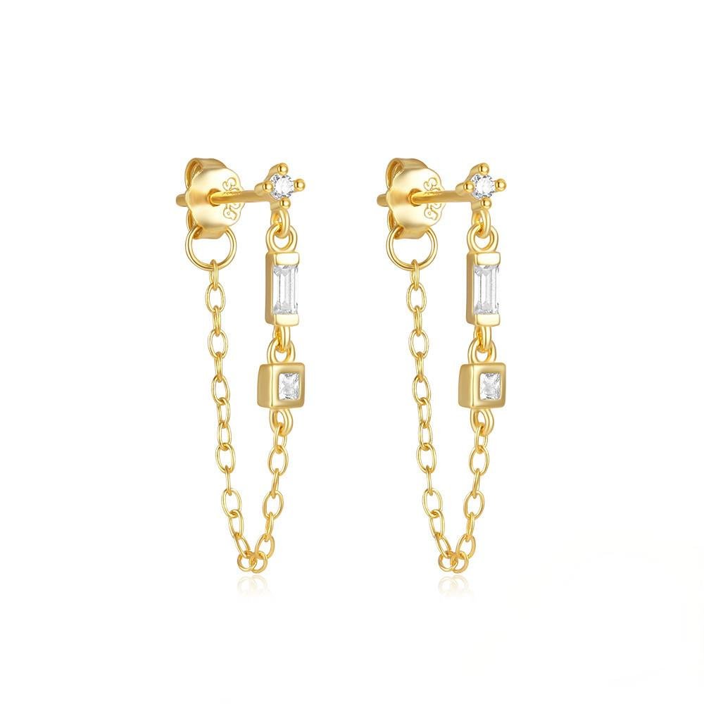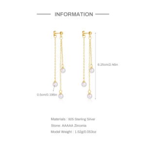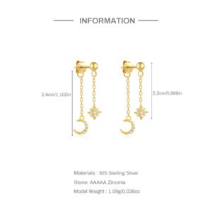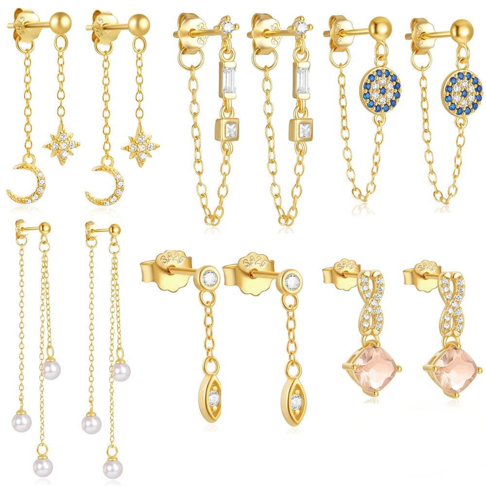 S925 pure silver diamond-set pearl tassel chain earrings and stud earrings, geometric stars and moons high-end earrings