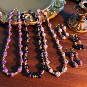 | color | White glazed bead necklace, White glazed ear rings, Black Colored Glaze Necklace, Purple Colored Glaze Earring, Purple Colored Glaze Necklace, Black Colored Glaze Earring |