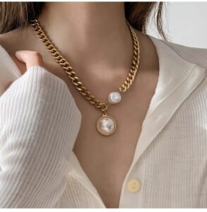 Exaggerated golden thick-chain large pearl necklace women’s sweater chain summer hoodie trendy European style online celebrity fashion – does not fadeAvailability: 200 in stock