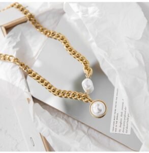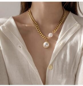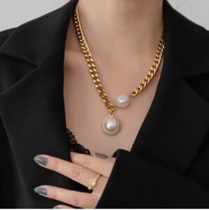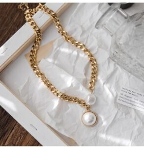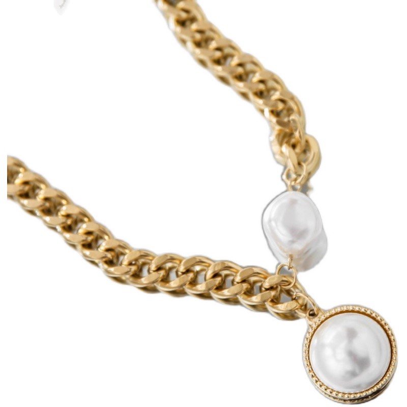 Exaggerated golden thick-chain large pearl necklace women’s sweater chain summer hoodie trendy European style online celebrity fashion – does not fadeAvailability: 200 in stock