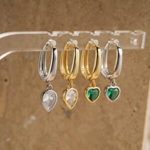 | color | Pair of white and gold round-cut diamond drop earrings, Pair of golden green diamond heart-shaped earrings, Pair of golden white diamond drop earrings, White-gold green diamond heart-shaped earrings – 1 pair |