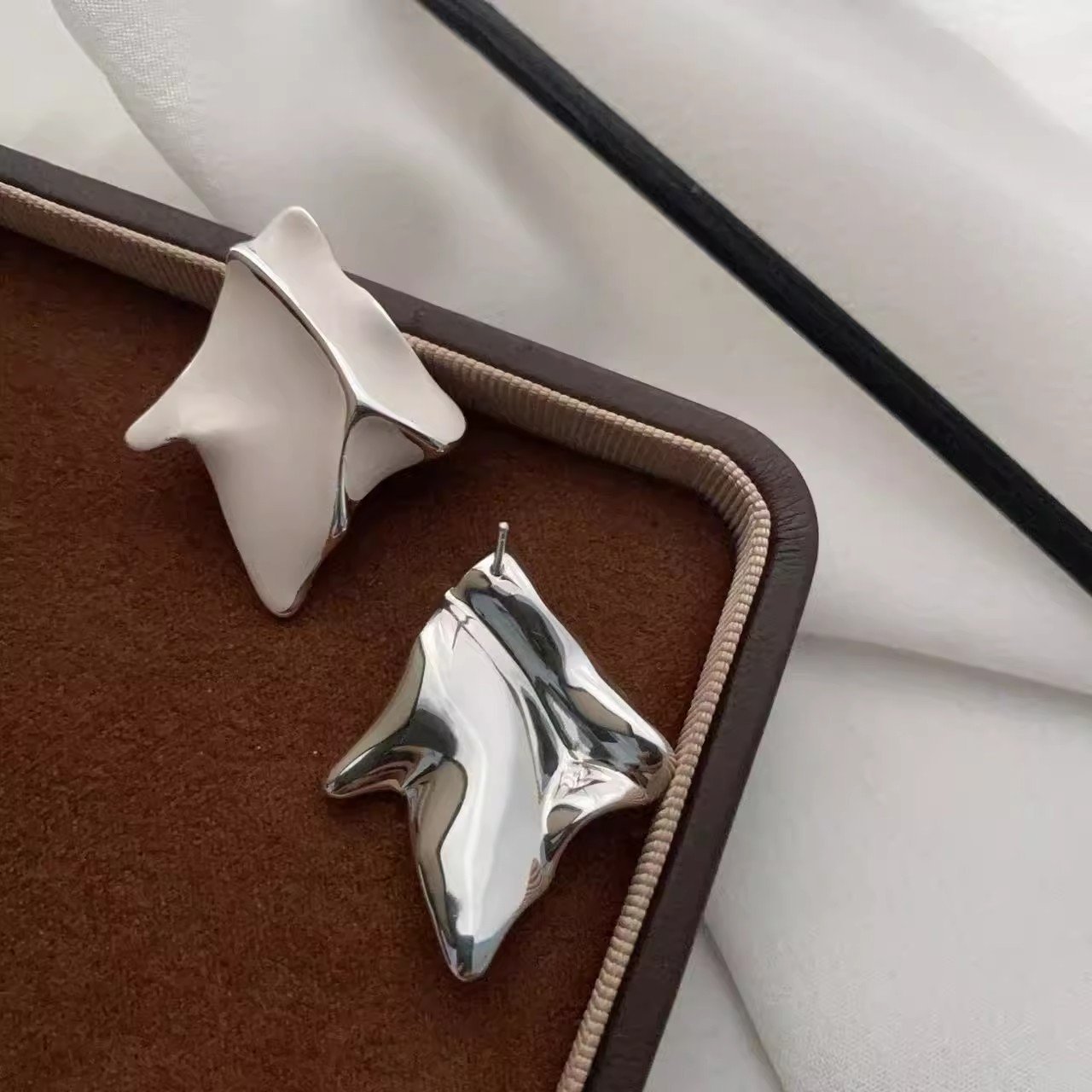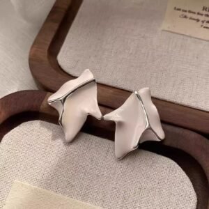 Vintage pleated metal minimalist geometric irregular stud earrings for women, a niche style that is trendy and versatile.