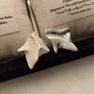 Vintage pleated metal minimalist geometric irregular stud earrings for women, a niche style that is trendy and versatile.Availability: 20 in stock