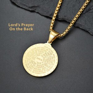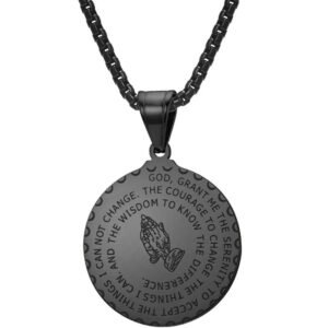 Stainless steel round plate pendant necklace, steel praying hand round plate necklace, men’s and women’s jewelry accessory