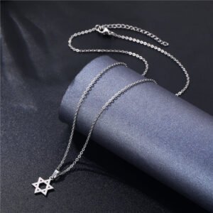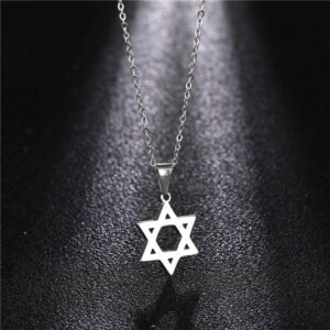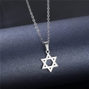 Geometric hexagonal star titanium steel necklace for women, featuring cartoon and anime-style mysterious symbols, stainless steel hexagonal star pendant as a decorative accessory.
