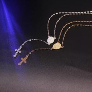Three-color cross-shaped fashionable necklace. European and American ladies’ fashionable new style trendy pendant necklaces. Accessories for hip-hop niche women.