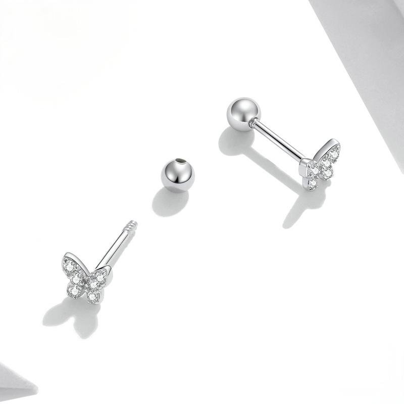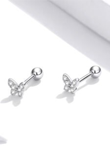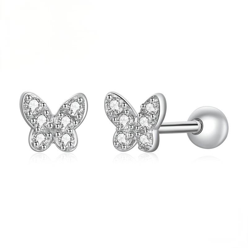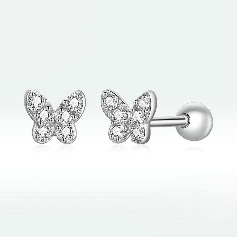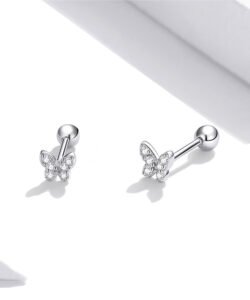 Pure silver S925 butterfly stud earrings – fresh, simple, small, rhodium-plated white gold zirconia delicate butterfly girls’ earringsAvailability: 96852 in stock