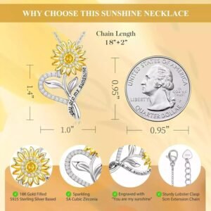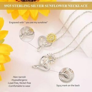 Sunflower (Sunflower) Helianthus love pendant necklace, heart-shaped lockbone chain for mothers’ day gift, European style